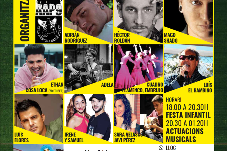 El concert ofereix un cartell amb música per a tots els estils i edats. A la festa infantil de la primera part, de les 18h, a 20:30h, els més petits podran gaudir de tallers i espectacles. I després, tothom a divertir-se tot ballant amb les actuacions de músics, quadres de ball, mags i youtubers: Adrián Rodríguez, Héctor Roldán, Mago Shado, Adela, Embrujo, Luís El Bambino, Luís Flores, Irene i Samuel i Sara Velasco i Javi Pérez.