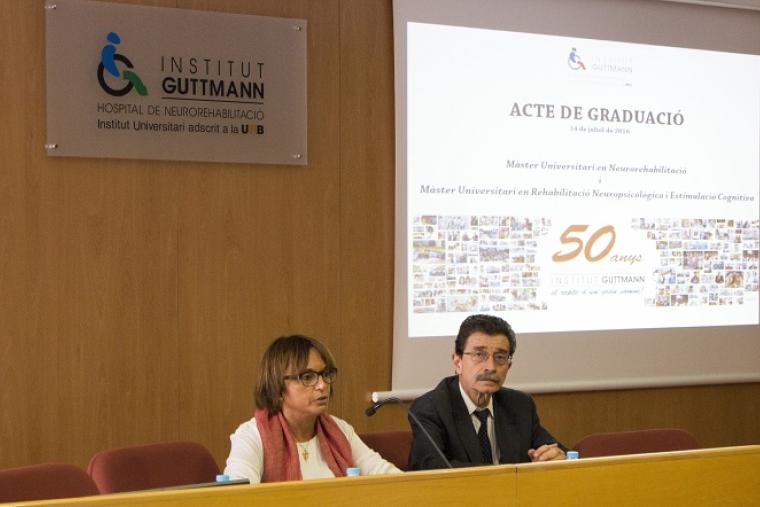 About 30 students gathered their official titles in a graduation ceremony inaugurated by the Director of the Institut Guttmann, Ms. Rosser Fernandez. Then Dr. Xavier Navarro, professor at the UAB and professor of the Neurorehabilitation Master, made a speech to attendees, and concluded the ceremony, Dr. Joan Vidal, director of the Institut Guttmann teaching.