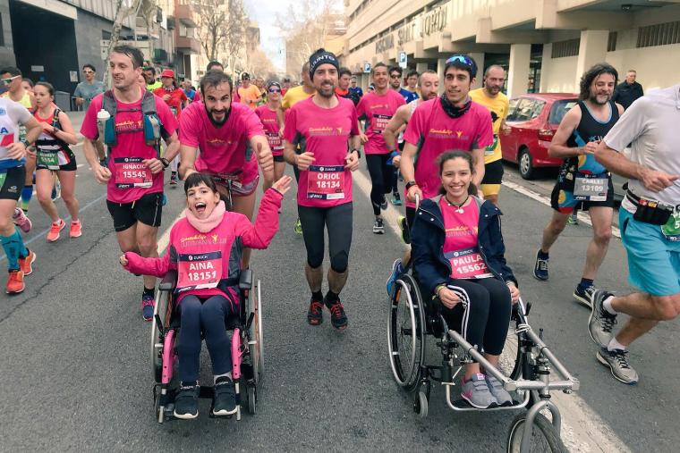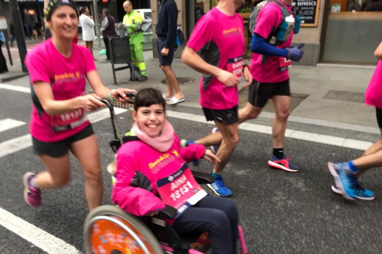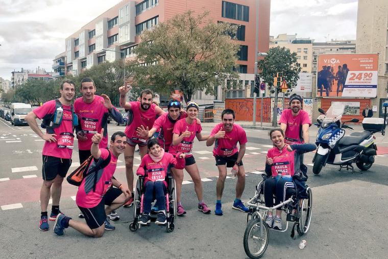 The "Pink Panthers", as they call themselves, always made turns to push through the streets of Barcelona Aina and Paula, two patients of the Children's Rehabilitation Unit who enjoyed the unique experience of this sport challenge and the encouragement of all the people who, surprised to see them, did not hesitate to support!
