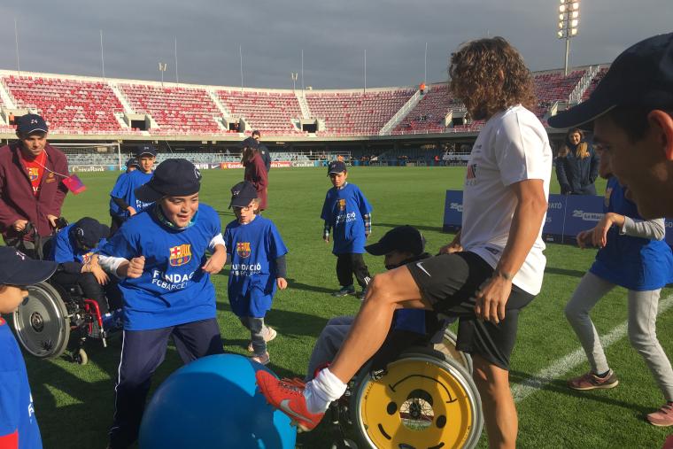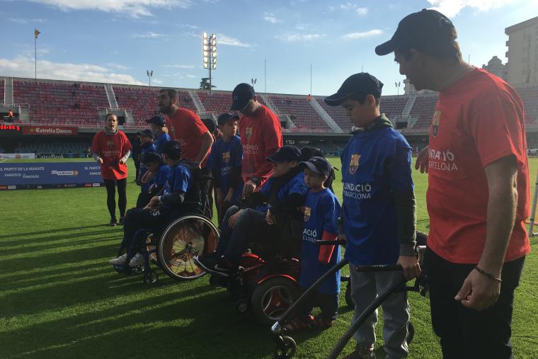 The activity has been possible thanks to the Fundació FCB, the athletes Puyol and Abidal, to Guttmann's professionals and volunteers who accompanied and helped the patients; and was carried out in collaboration with La Marató de TV3 held the same Sunday, this year dedicated to stroke and traumatic brain and spinal cord injuries.