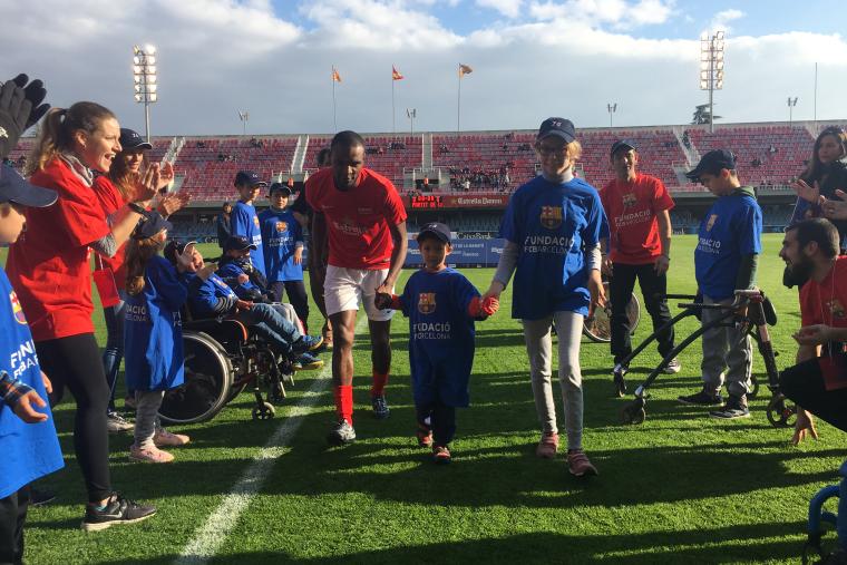 Last Sunday morning, a group of children patients who do rehabilitation in the hospital could enjoy a very special day participating in a football match with soccer players Carles Puyol and Eric Abidal at the Miniestadi of Futbol Club Barcelona.