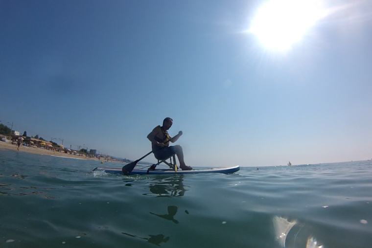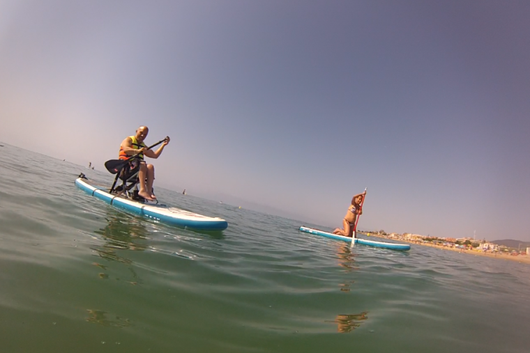 Sports & Life Guttmann Club has organized a weekend of paddle surfing in Cabrera de Mar with two groups of patients, one on Saturday and the other on Sunday. Both wheelchair users and their friends and family could have their first contact with this water sport, as well as enjoy a swim in the sea, a pleasure that some of them had not been able to experience for years.
