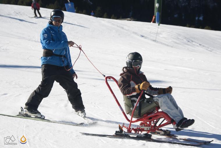 With different technical aids, depending of individual capacities, all participants were allowed to ski and permit the benefits of the sport practice in the natural surroundings. Adapted sports have become a powerful therapeutic tool to improve health, the degree of functional autonomy and the self-esteem.